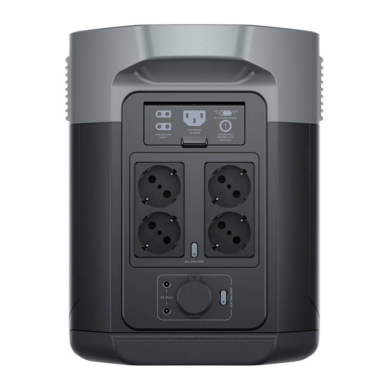 - Porty wyjściowe AC : 4 gniazda, 2400W (wzrost 4800W), X-Boost 3100W, DC : 2 × USB-A / 2 × szybkie ładowanie USB-A / 2 × USB-C (100 W) / 1 × samochodowe gniazdo zasilania / 2 × DC5521