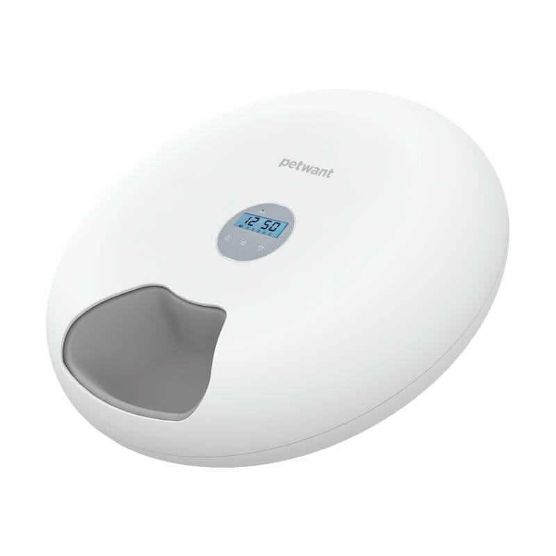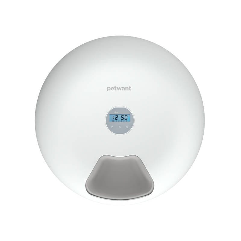 Petwant F6 LED to automatyczny podajnik karmy dla Twojego czworonożnego przyjaciela. W 180 ml miskach możesz umieścić każdy rodzaj posiłku, a robot w zależności od ustawionej godziny, ustawi się na odpowiedni rodzaj pokarmu.