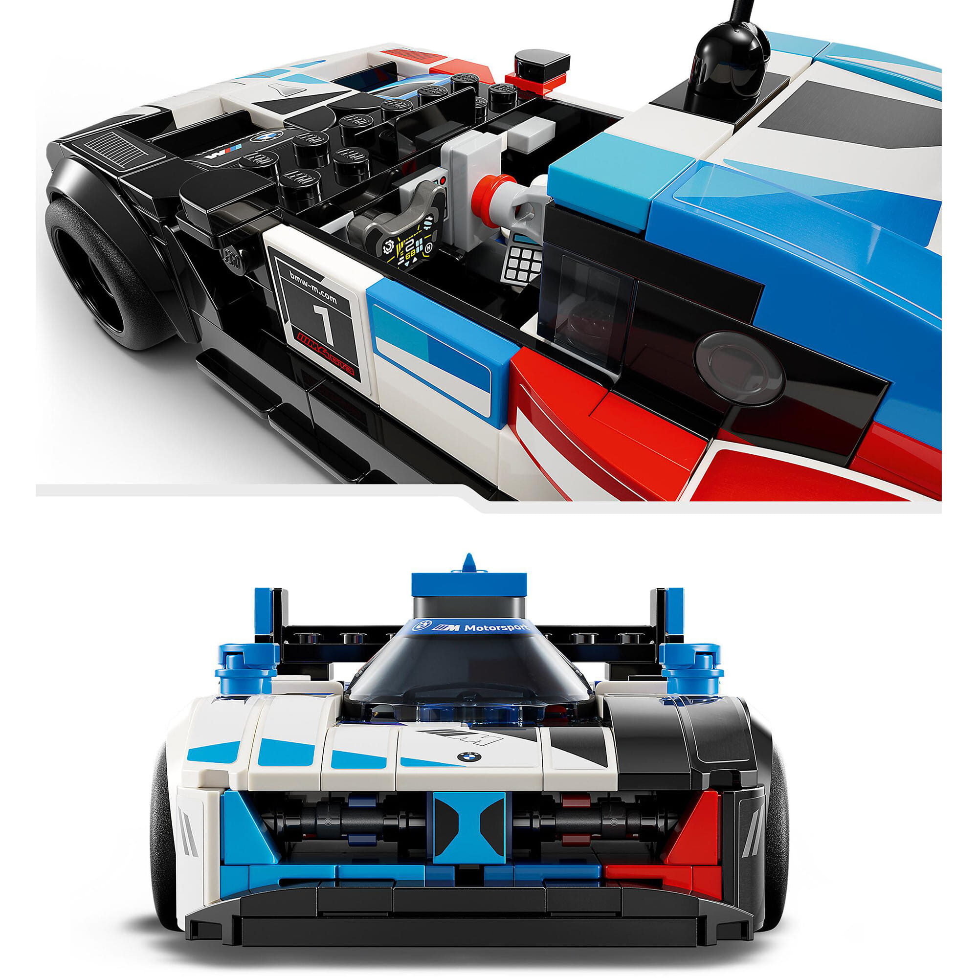 Repliki modeli BMW M4 GT3 i BMW M Hybrid V8 zawierają autentyczne detale inspirowane pierwowzorami, w tym rury wydechowe, dyfuzory, tylne skrzydła, kolorystykę BMW M Motorsport i elementy wnętrza. Oba samochody wyścigowe mają zdejmowany dach i minifigurkę kierowcy, którą dzieci mogą umieścić w środku, aby odgrywać wyścigi.