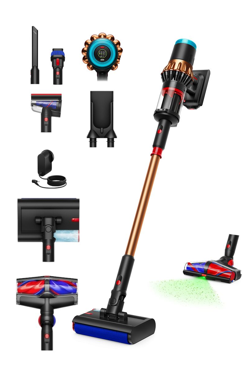 - Cechy dodatkowe Łączność Bluetooth z aplikacją MyDyson, Funkcja Booster, 3 tryby mocy, Podświetlenie wykrywa niewidoczne na pierwszy rzut oka cząsteczki