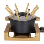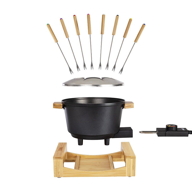 Stopy antypoślizgowe zabezpieczają przed przemieszczaniem się urządzenia na stole, co zapewnia stabilność podczas korzystania. Na uwagę zasługuje również zabezpieczenie przed przegrzaniem i dioda zasilania, które gwarantują bezpieczeństwo użytkowania. Bambusowa podstawa umożliwia wygodny transport fondue. Garnek wykonano z aluminium i stali nierdzewnej, dzięki czemu jest solidny i niepodatny na uszkodzenia.