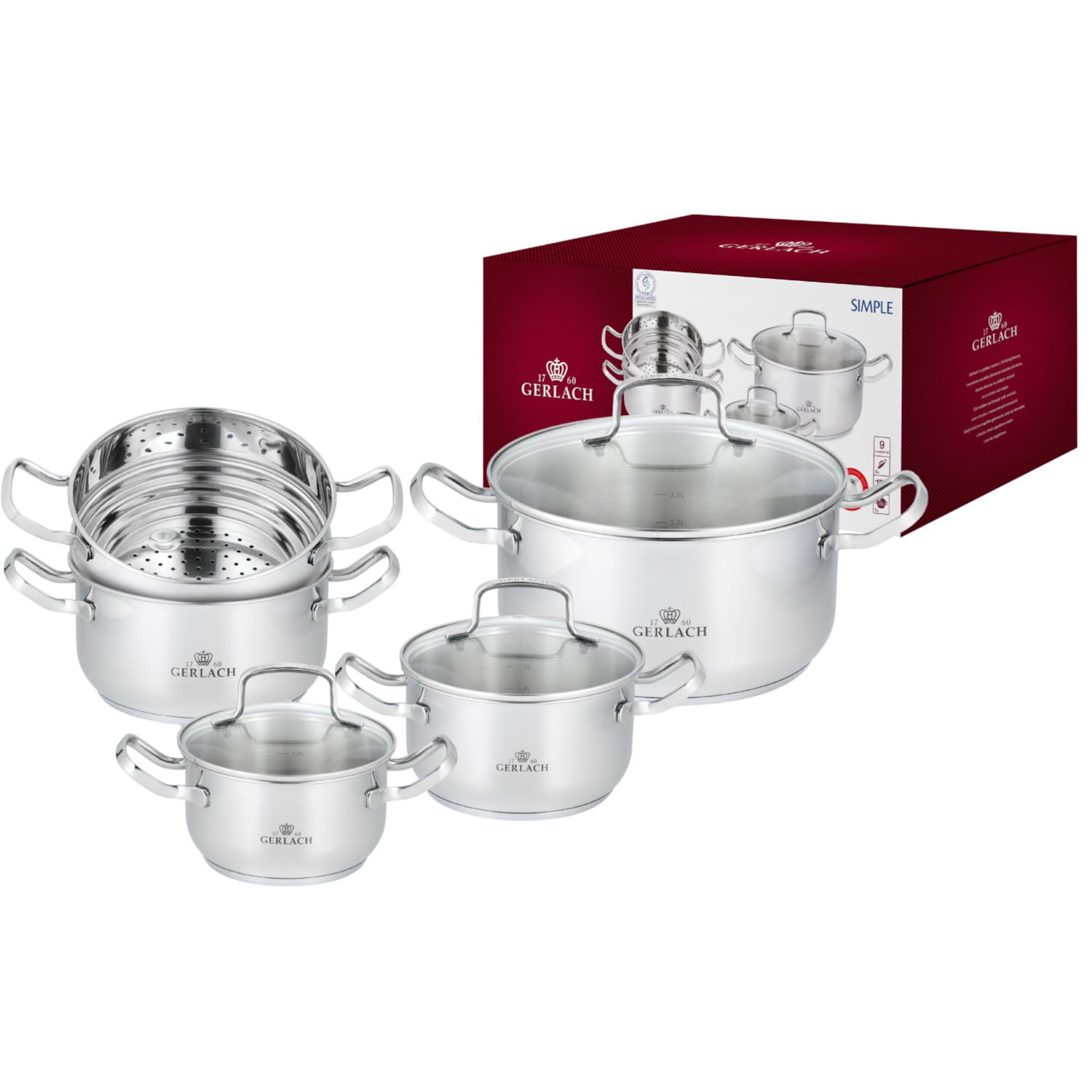 - Nazwa produktu Zestaw garnków Gerlach 9 el. SIMPLE